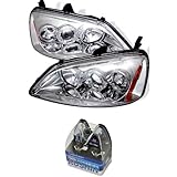Carpart4u Honda Civic 2/4DR Halo Projector Headlights & Koshin Platinum White Halogen Light Bulbs package