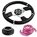 NRG-SRK-101H+008R+650PK, NRG Innovations 13.78" 350mm Black Leather Racing Steering Wheel Combo with 6 Hole Short Hub Adapter with Gen 3.0 with Handle Pink Quick Release Kit SRK-101H